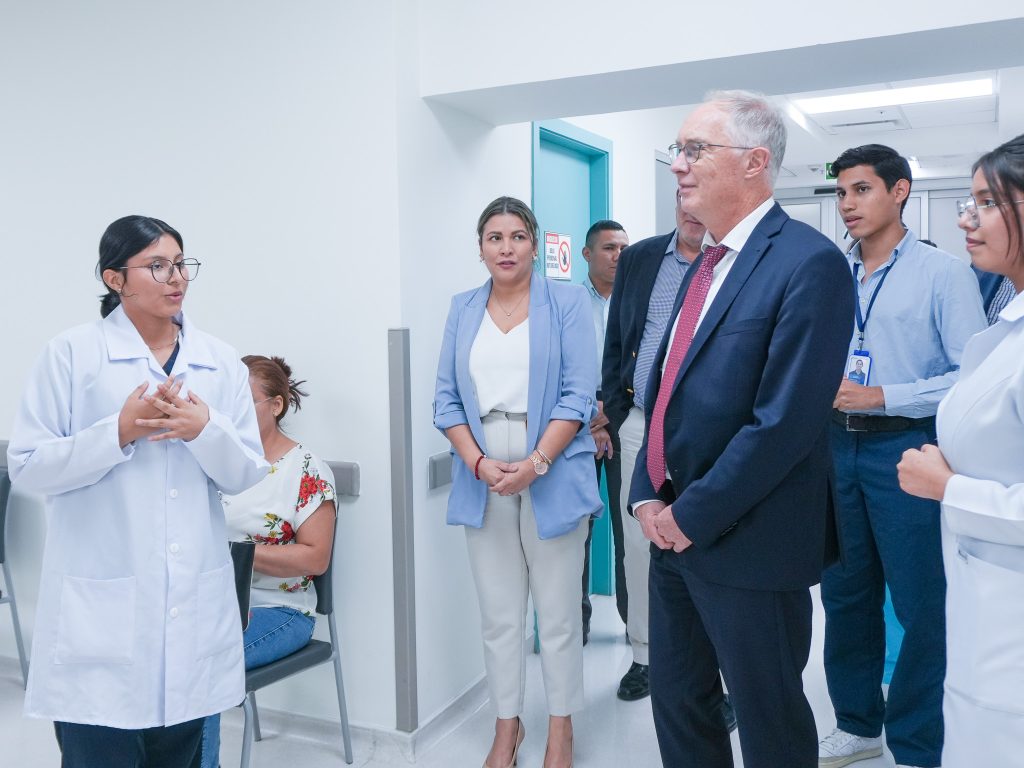 Durante su recorrido por diversas áreas del hospital, el embajador, acompañado por el equipo de JBG Educación, fue testigo del trabajo y la preparación que reciben los aprendices del programa de Auxiliar de Enfermería. Este modelo educativo, basado en la combinación de formación teórica y práctica en entornos reales de trabajo, ha sido una herramienta clave para capacitar a jóvenes con altos estándares de calidad y empleabilidad.